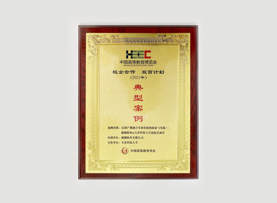 此外,高博会期间,以“产教融合育人才 校企合作稳就业”为主题的第六届产教融合发展大会召开。会上,麒麟工坊“信创产教融合实训基地的探索与实践—麒麟软件&天津科技大学适配实训营”案例荣获2021年度中国高等教育博览会“校企合作 双百计划”典型案例奖。(点击这里了解更多)